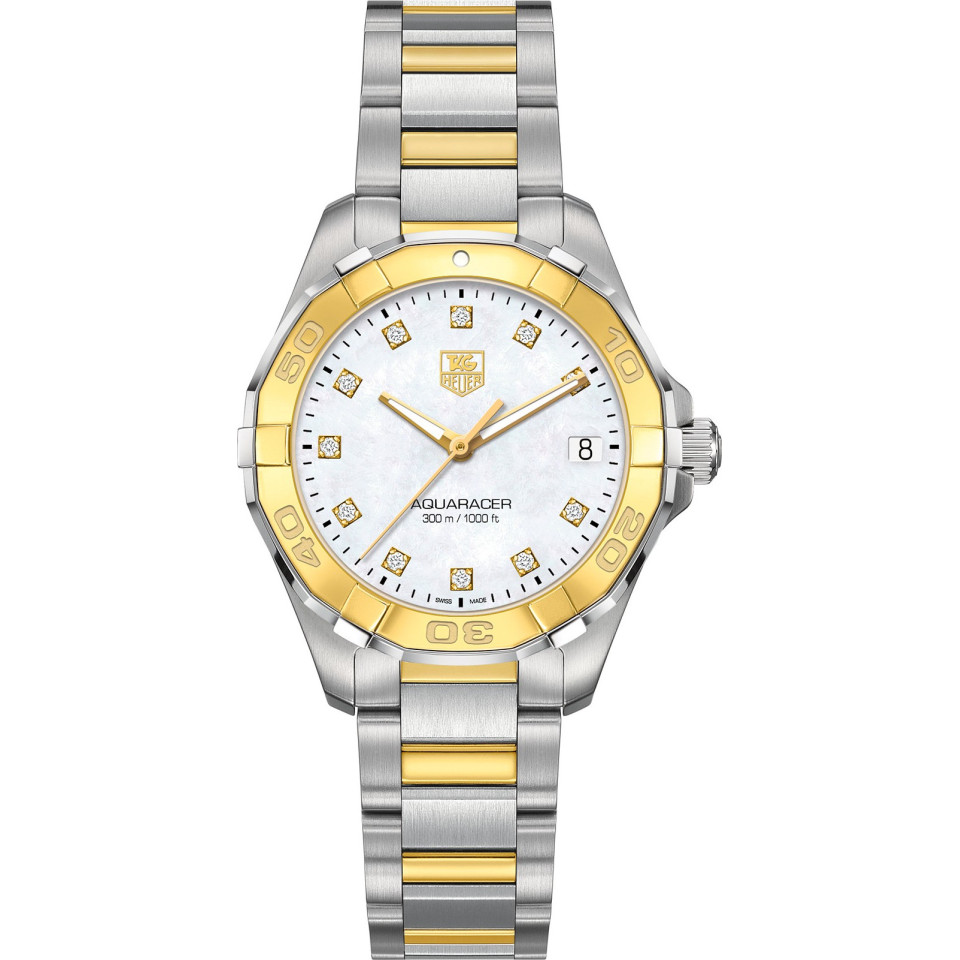 Tuyệt đẹp trên cạn, thực tế dưới nước. Chiếc Aquaracer này tạo nên sự hài hòa hoàn hảo giữa thép và vàng sang trọng. Viền vàng 18 cara nguyên khối được đánh bóng hoàn toàn phù hợp với các mắt xích vàng của dây đeo hình chữ H tinh xảo. Màu vàng rực rỡ tiếp tục xuất hiện trên các chi tiết được chế tác tinh xảo trên mặt số. Một viên ngọc hấp dẫn cho mọi dịp.