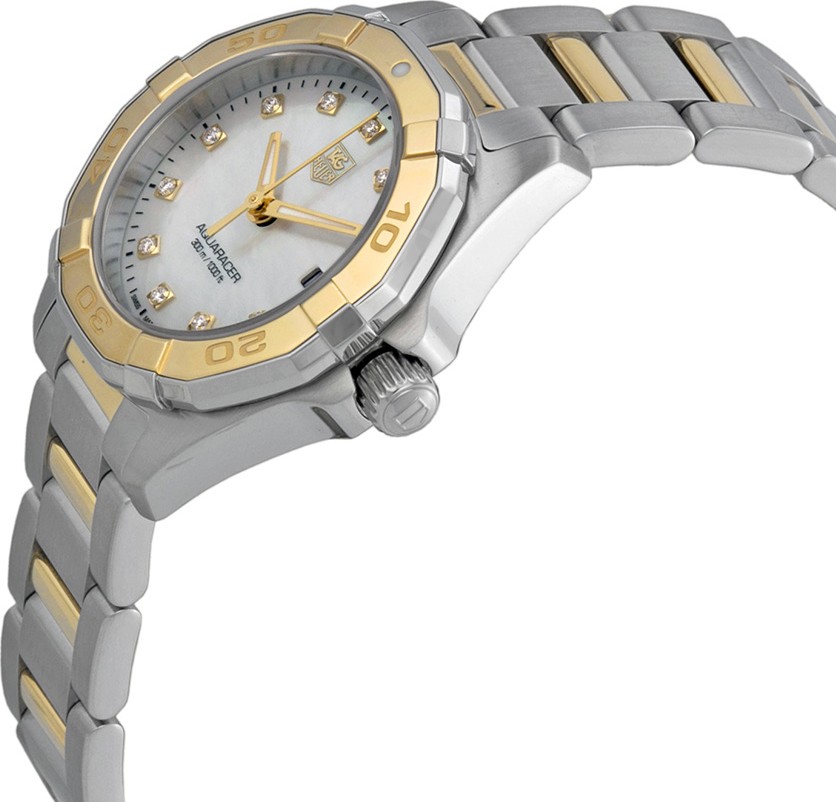 Tuyệt đẹp trên cạn, thực tế dưới nước. Chiếc Aquaracer này tạo nên sự hài hòa hoàn hảo giữa thép và vàng sang trọng. Viền vàng 18 cara nguyên khối được đánh bóng hoàn toàn phù hợp với các mắt xích vàng của dây đeo hình chữ H tinh xảo. Màu vàng rực rỡ tiếp tục xuất hiện trên các chi tiết được chế tác tinh xảo trên mặt số. Một viên ngọc hấp dẫn cho mọi dịp.