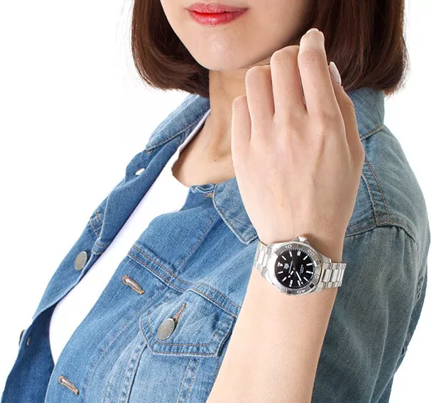kẹp gấp bằng thép hoàn thiện xen kẽ với các nút ấn an toàn kép có phần mở rộng khi lặn; Khắc TAG Heuer