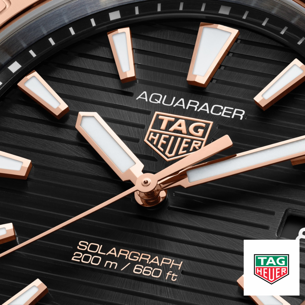 Thể hiện sự thanh lịch và bền bỉ, TAG Heuer Aquaracer Professional 200 Solargraph Two-Tone với các chi tiết thép mạ vàng hồng 18K 5N kết hợp công nghệ Solargraph tiên tiến với các chi tiết thiết kế tinh tế. Chiếc đồng hồ 40mm này được thiết kế dành cho những người ưa phiêu lưu, mang đến sự kết hợp hoàn hảo giữa sự sang trọng và tính thực dụng. Caliber TH50-00. Bộ máy Solar Quartz. Chức năng Giờ, Phút, Giây, Ngày. Kích thước 40mm. Khả năng chống nước ở độ sâu 200m. Vỏ thép được chải mịn/đánh bóng. Vành bezel xoay. Núm vặn bằng thép vặn vít mạ vàng hồng 18K 5N. Nắp lưng trơn – Thép. Chất liệu dây đeo: Thép mạ. Màu bạc & vàng. Hoàn thiện: Chải mịn/đánh bóng. Khóa gập: Nút bấm – Thép đánh bóng. Hoàn thiện: Tia nắng. Màu đen