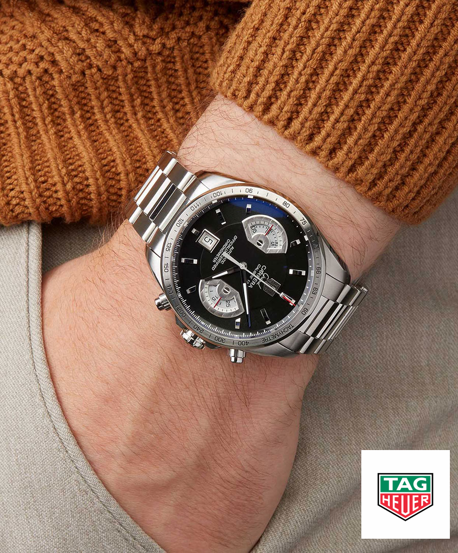 Kiểu dáng đẹp mắt và Hệ thống xoay độc quyền khiến Grand Carrera Calibre 17 RS Chronograph tự động trở thành một sản phẩm không thể thiếu đối với những người sành về đồng hồ bấm giờ và xe đua. Lấy cảm hứng từ thiết kế động cơ xe đua GT, Hệ thống xoay TAG Heuer thay thế kim truyền thống bằng đĩa kiểu bảng điều khiển: khả năng đọc là tối ưu trong khi vẫn duy trì sự sang trọng dễ dàng. Trên đồng hồ bấm giờ Grand CARRERA Calibre 17 RS, Hệ thống quay hiển thị kim giây cố định ở vị trí 3 giờ và kim phút bấm giờ ở vị trí 9 giờ. Ngày hiển thị ở vị trí 6 giờ. Đồng hồ bấm giờ tự động Grand CARRERA Calibre 17 có nhiều lựa chọn hoàn thiện sang trọng. Tất cả chúng đều có một tinh thể sapphire được lắp vào mặt sau để lộ ra bộ chuyển động.