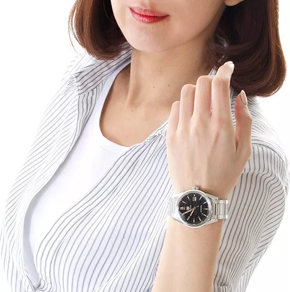 Kim giờ và phút được mạ vàng hồng 5N nhiều mặt, được đánh bóng bằng chất liệu superluminova® màu trắng