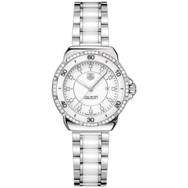 Sự sang trọng thuần khiết được bao bọc bởi phong cách mới mẻ của TAG Heuer. Bộ sưu tập Công thức 1 nổi bật với các chi tiết trang trí bằng kim cương và gốm sứ chống trầy xước.