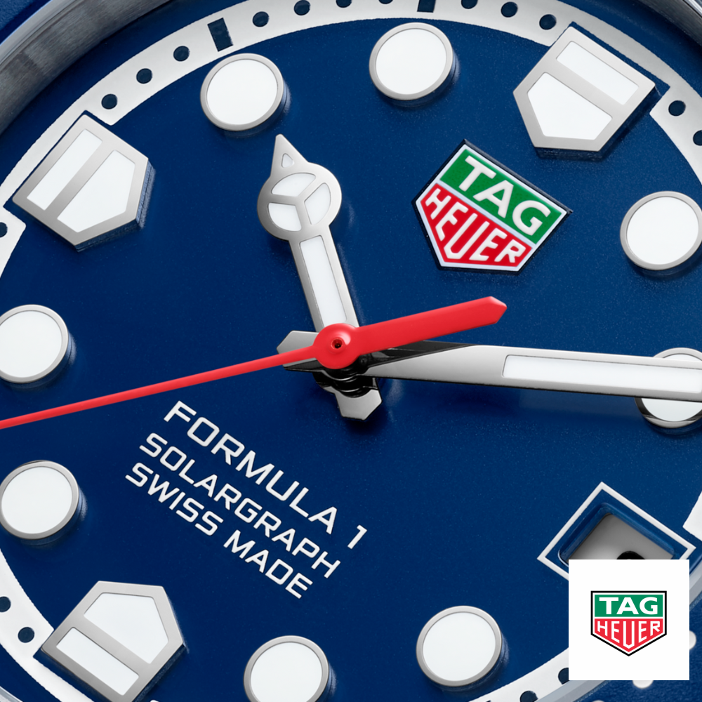 Lấy cảm hứng từ chiếc đồng hồ Series 1 nguyên bản, TAG Heuer Formula 1 Solargraph 38mm mở rộng tính thẩm mỹ tràn đầy năng lượng với mặt số màu xanh lam rực rỡ và thiết kế đẹp mắt. Kết hợp phong cách vui tươi với chức năng, chiếc đồng hồ chạy bằng năng lượng mặt trời này được tạo ra dành cho những người đi đầu xu hướng coi trọng cả phong cách và sự đổi mới. Mặt số opalin màu xanh lam tương phản hoàn hảo với vành màu trắng, tạo nên hình ảnh táo bạo nhưng đẹp mắt. Kim và vạch chỉ giờ mạ rhodium, được làm nổi bật bởi Super-LumiNova®, đảm bảo khả năng đọc hoàn hảo trong mọi điều kiện ánh sáng, trong khi vành TH-Polylight giới thiệu sự đổi mới về vật liệu hiện đại. Được thiết kế theo công thái học, vỏ thép phun cát 38mm vừa vặn thoải mái trên cổ tay ở mọi kích cỡ nhờ dây đeo bằng thép có khóa gập và nút bấm an toàn kép. Được cung cấp năng lượng bởi bộ máy Calibre TH50-00 Solargraph, chiếc đồng hồ mang lại hiệu suất lâu dài. Một phút tiếp xúc với ánh sáng sẽ cung cấp năng lượng cho đồng hồ trong cả ngày, đảm bảo độ chính xác liên tục mà không cần thay pin.Bộ máy Solar Quartz. Chức năng Giờ, Phút, Giây, Ngày. Kích thước 38 mm. Độ dày 9,9 mm. Khoảng cách vấu 18,5 mm. Khả năng chống nước 100 m. Vỏ thép. Vành bezel Xoay vành bezel TH_Polylight. Số lượng vành bezel Kim cương 0. Trọng lượng vành bezel Kim cương 0,000. Núm vặn bằng thép. Mặt sau trơn – Thép. Chất liệu dây đeo Thép Hoàn thiện Phun cát. Khóa gập Khóa an toàn kép – Thép. Màu mặt số Xanh lam.