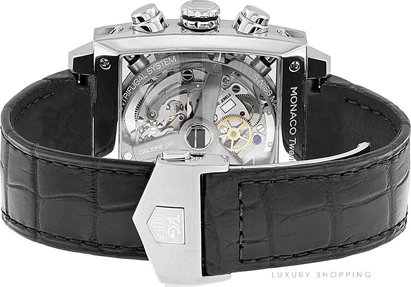 Vỏ thép không gỉ với dây đeo bằng da màu đen. Viền thép không gỉ cố định. Mặt số màu đen với kim màu bạc và vạch chỉ giờ. Loại quay số: Analog. Bàn tay và điểm đánh dấu phát quang. Hiển thị ngày ở vị trí 6 giờ. Chronograph – hai mặt số phụ hiển thị: 60 giây và 30 phút. Chuyển động tự động với mức dự trữ năng lượng 40 giờ. Tinh thể sapphire chống trầy xước. Kéo/đẩy vương miện. Mặt sau của bộ xương. Đường kính vỏ: 39 mm. Độ dày vỏ: 12 mm. Hình dạng vỏ vuông. Chiều rộng dải: 17,8 mm. Chiều dài băng tần: 7 inch. Khóa triển khai. Chống nước ở độ sâu 100 mét / 330 feet. Chức năng: đồng hồ bấm giờ, ngày, giờ, phút, giây. Kiểu dáng đồng hồ sang trọng. Nhãn đồng hồ: Swiss Made. Đồng hồ nam da đen mặt số đen tự động Tag Heuer Monaco